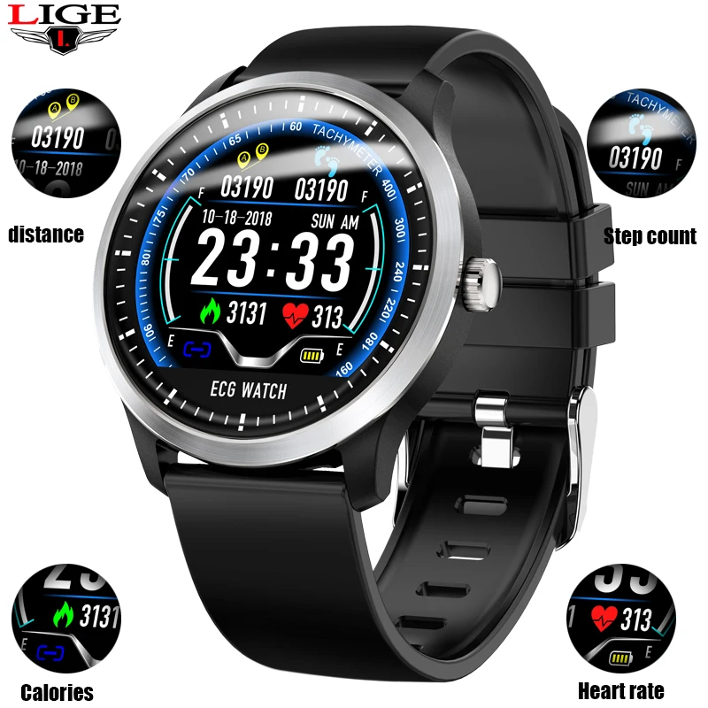 LIGE N58 ECG PPG smart watch with ECG EKG display dynamic ECG heart rate monitor blood pressure sma